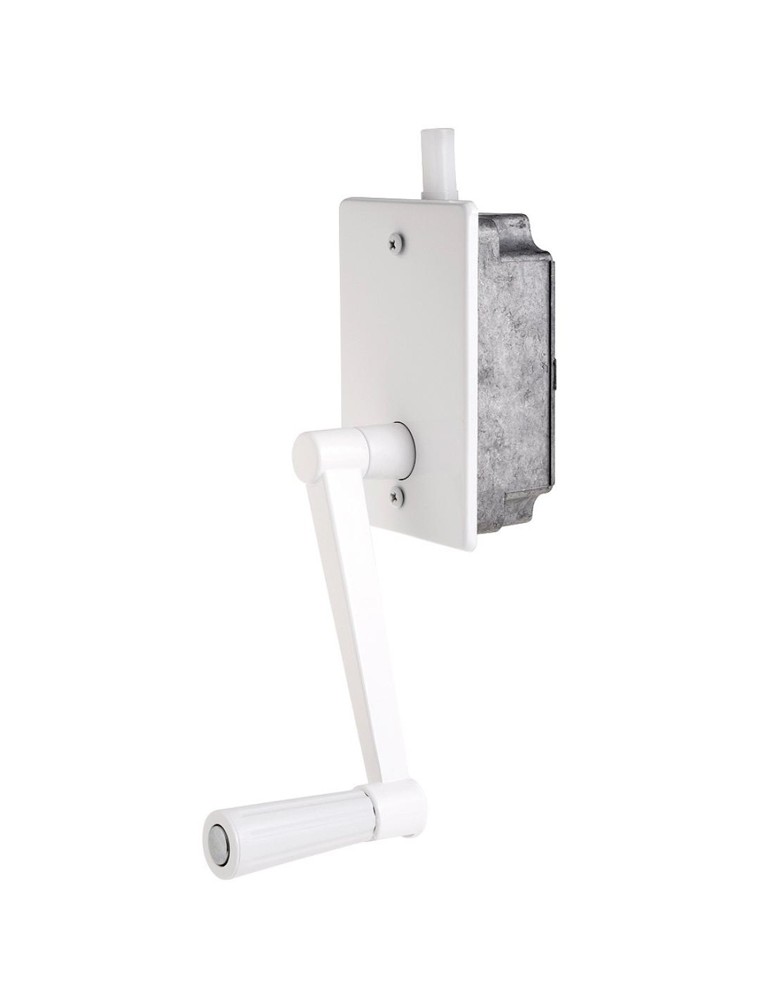 Torno elevacion persiana empotrar - Torno para empotrar. - Incluye caja, placa, mecanismo, manivela y tornillos. - Peso máximo recomendado de uso 40 kg. - Color aluminio.