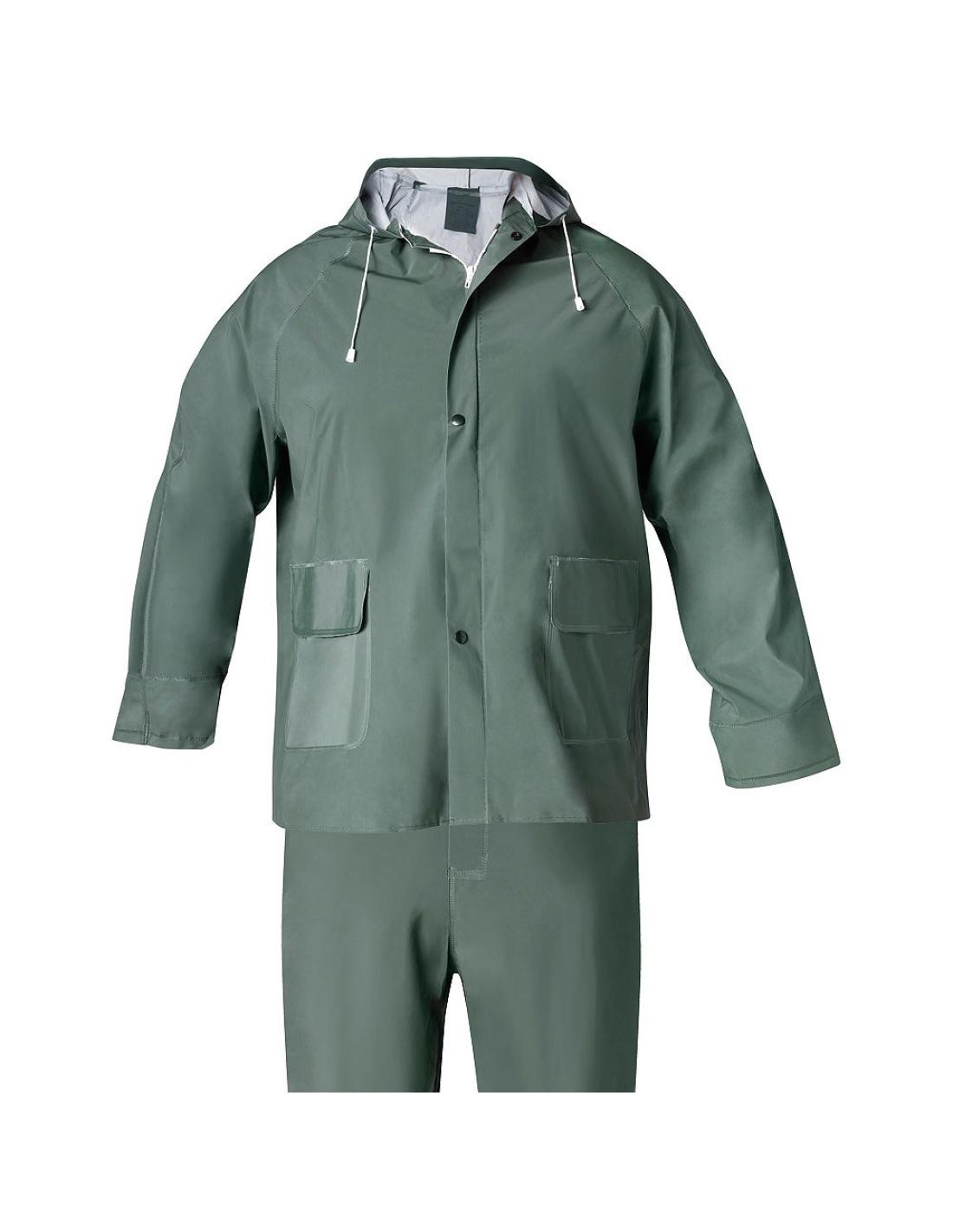 - Conjunto chaqueta pantalón pvc, capucha ajustable con cordón.