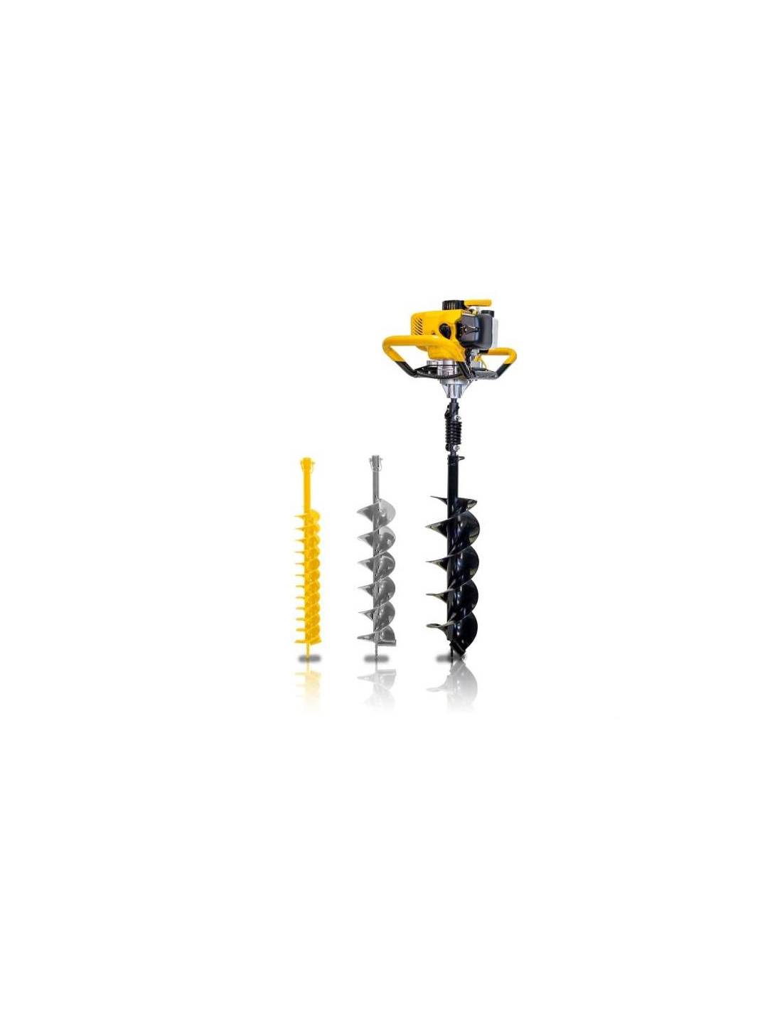 GARLANDAhoyadora de gasolina. GARLAND DRILL 932 SG-V20. Motor 2 T de 52cc, 1.95CV y 1.45Kw de potencia. 8.6kg de peso. Transmisión con muelle reductor de impactos, incluye 3 barrenas intercambiables de 10, 15 y 20 cm y 80 cm de largo. Muelle reductor, Caract. broca Espesor 1.8mm, Peso máquina vacía 8.6kg, Revol máx motor min-1 8800, Consumo 0.88kg/kWh, Autonomía 38.37min, Dep. comb. 1.2l, Apto para 2 operarios, Ralenti min-1 2800, 115dB garantizada/medida, Accesorio estándar Incluye 3 brocas de doble hélice de las siguientes medidas: Broca 1 - D=20 cm, L=80 cm Broca 2 - D=15 cm, L=80 cm Broca 3 - D=10 cm, L=80 cm. Largo en uso 126cm, Ancho en uso 54cm, Alto en uso 27cm.