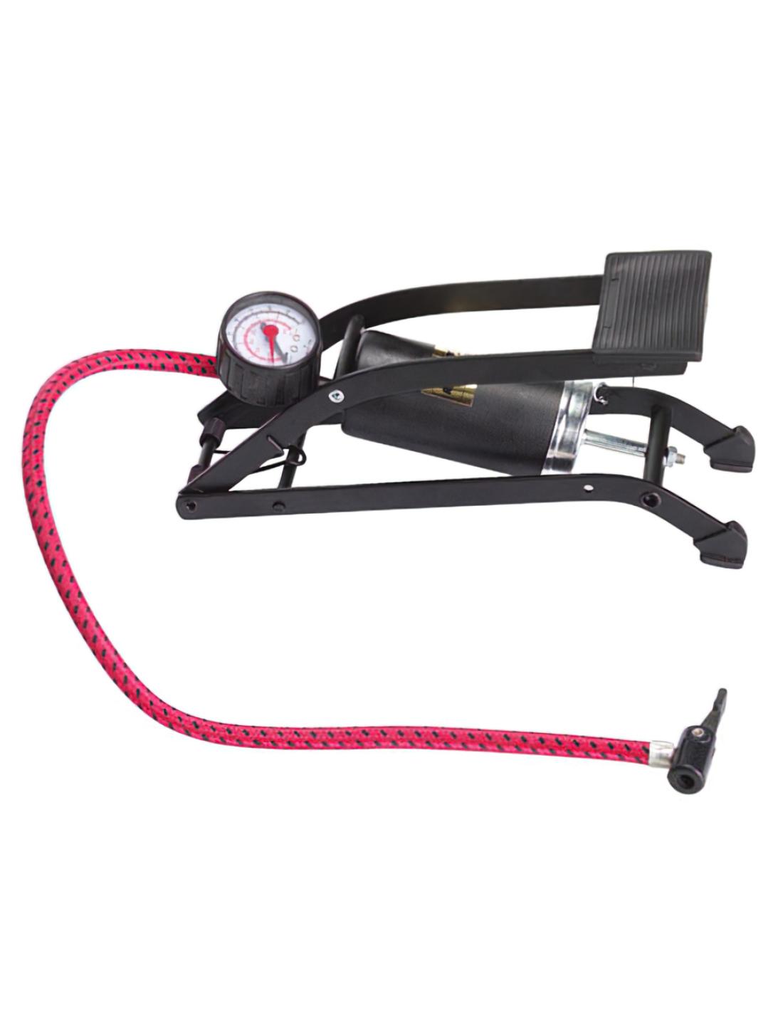 Bomba inflar de pie - Con manometro. - 1 piston de inflado. - Con boquilla de sujeción. - Articulo también conocido como: bomba bici, bomba mano, bomba moto, bomba colchon.