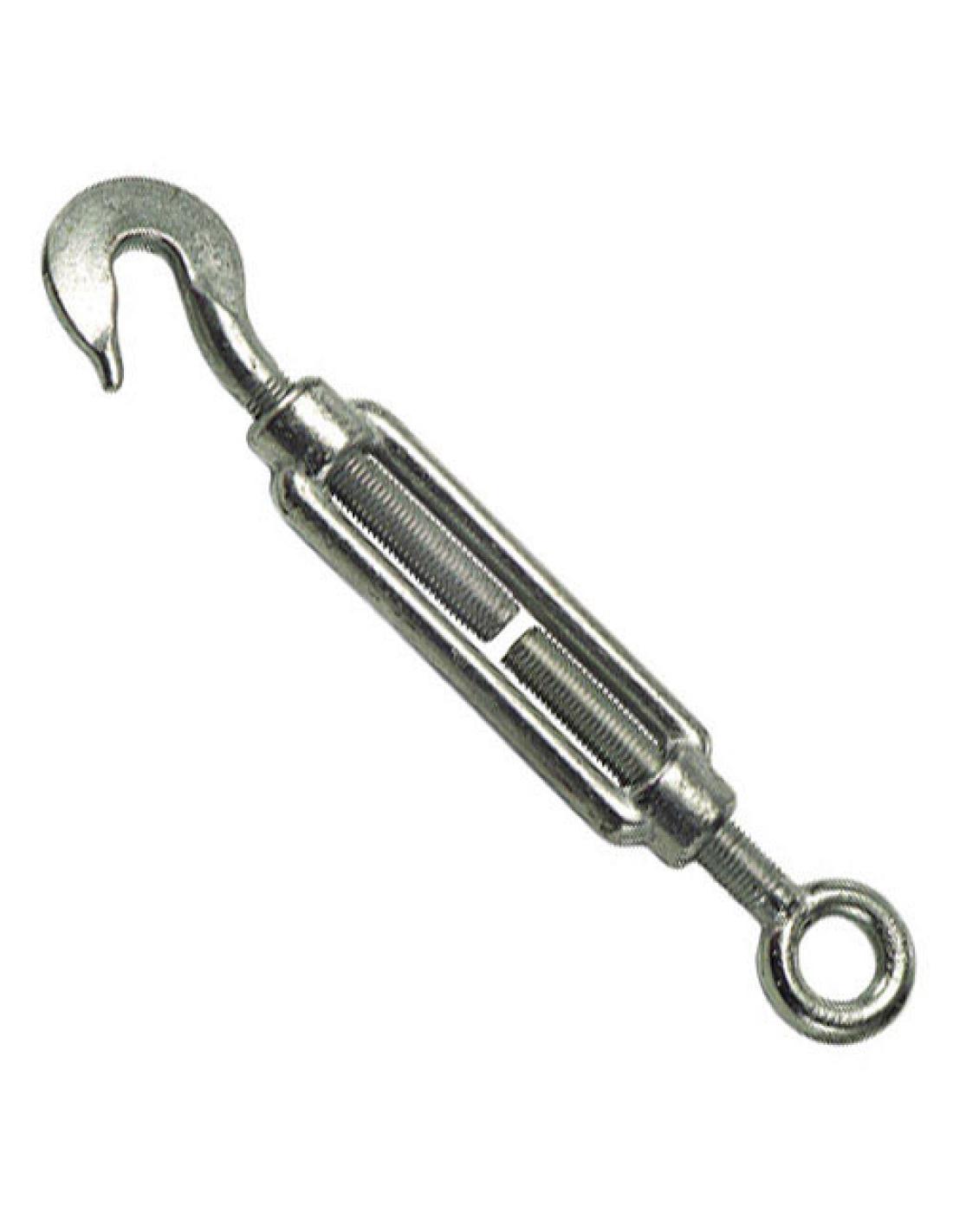 Tensores galvanizados - Medida: M 8 mm. 5/16" - Usos: tensado temporal de cables, cabos, alambre, etc. - Galvanizado, aportadanle dureza y mayor durabilidad frente al oxido. - Uso domestico. - No procede su uso en tareas profesionales, industriales o sujección de carga alguna